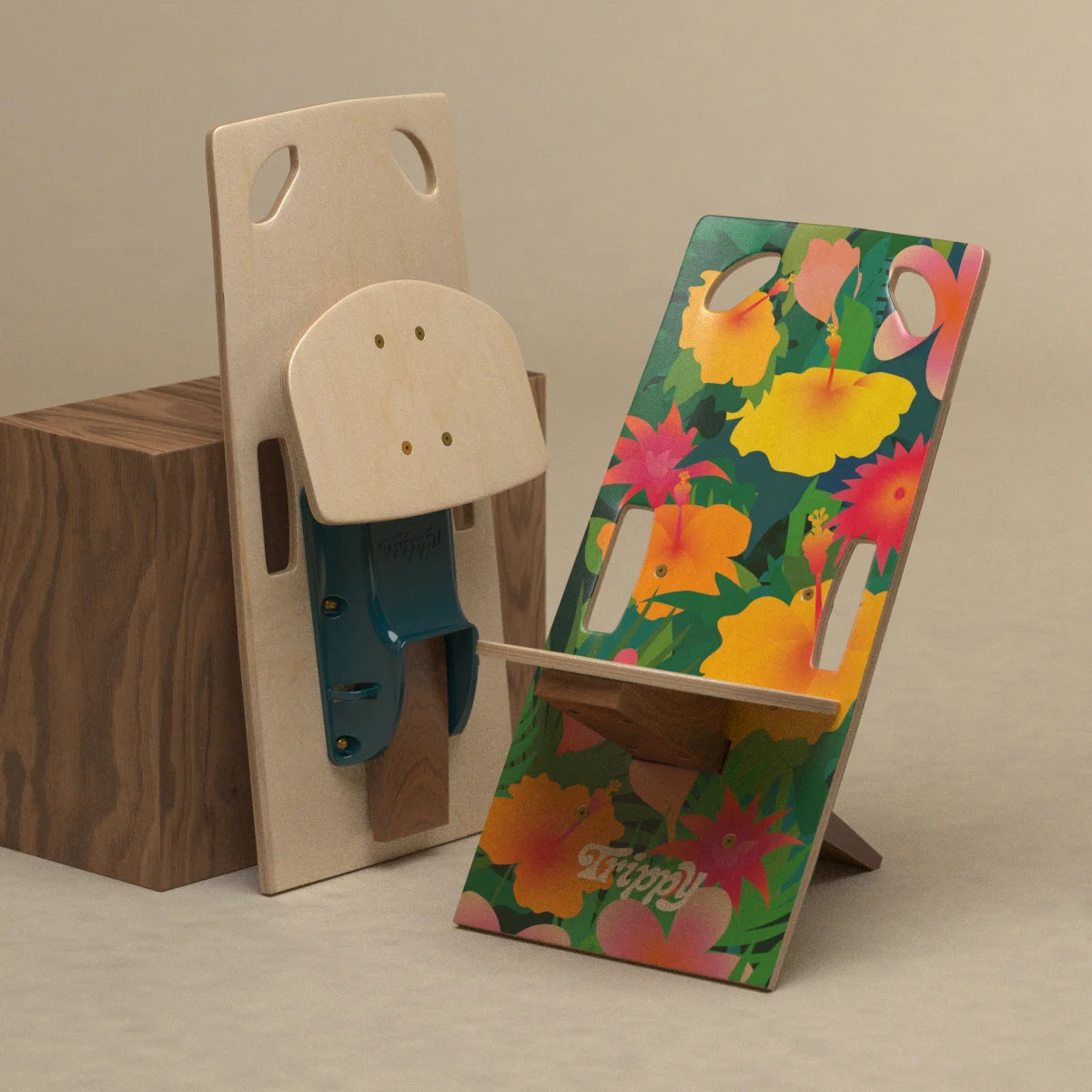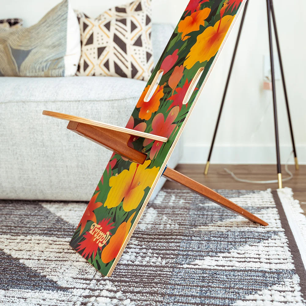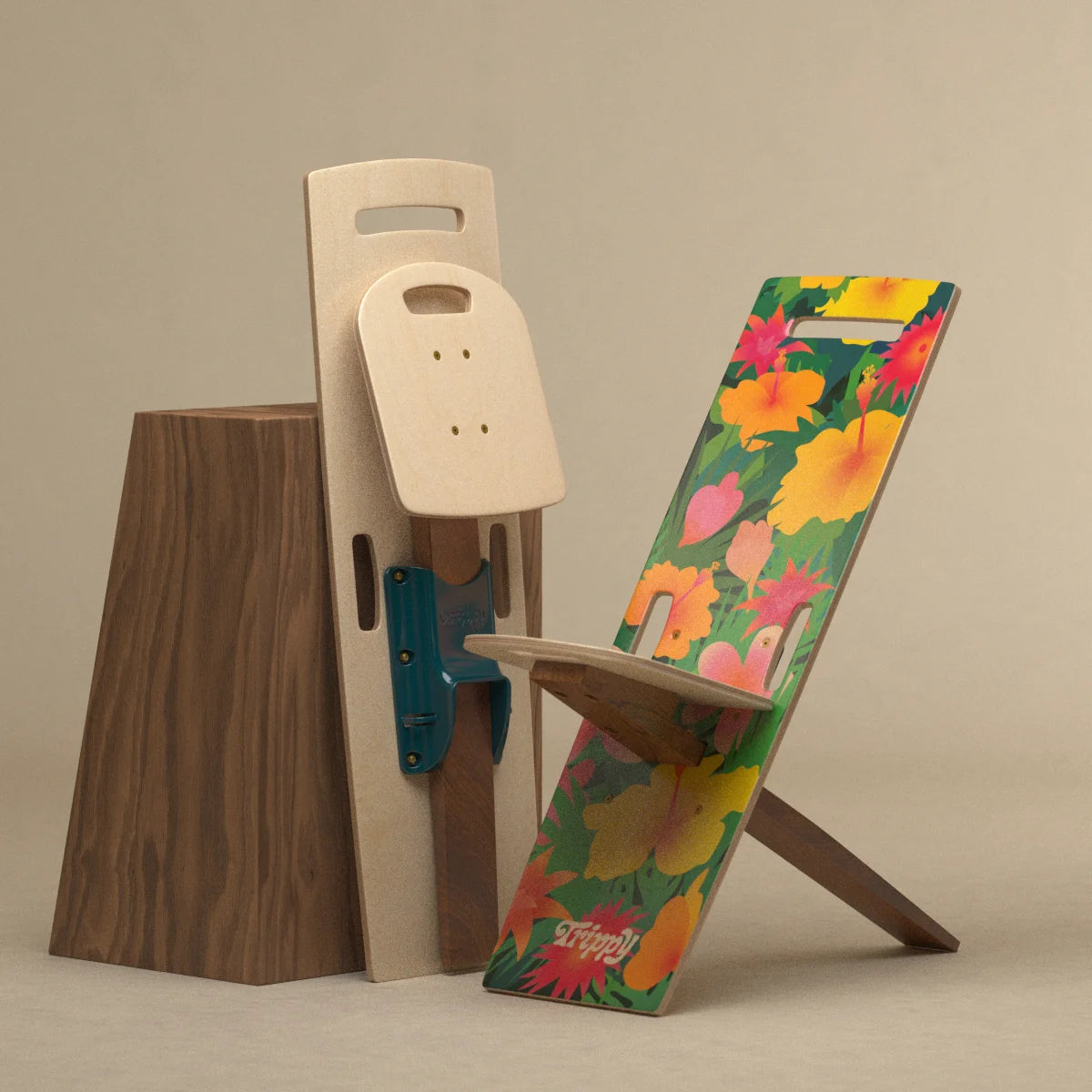Each Trippy Chair is crafted with premium maple and sapele wood, water-resistant coatings, and UV-resistant inks (for printed chairs). They’re perfect for a classy, relaxing sit, whether indoors or outdoors.