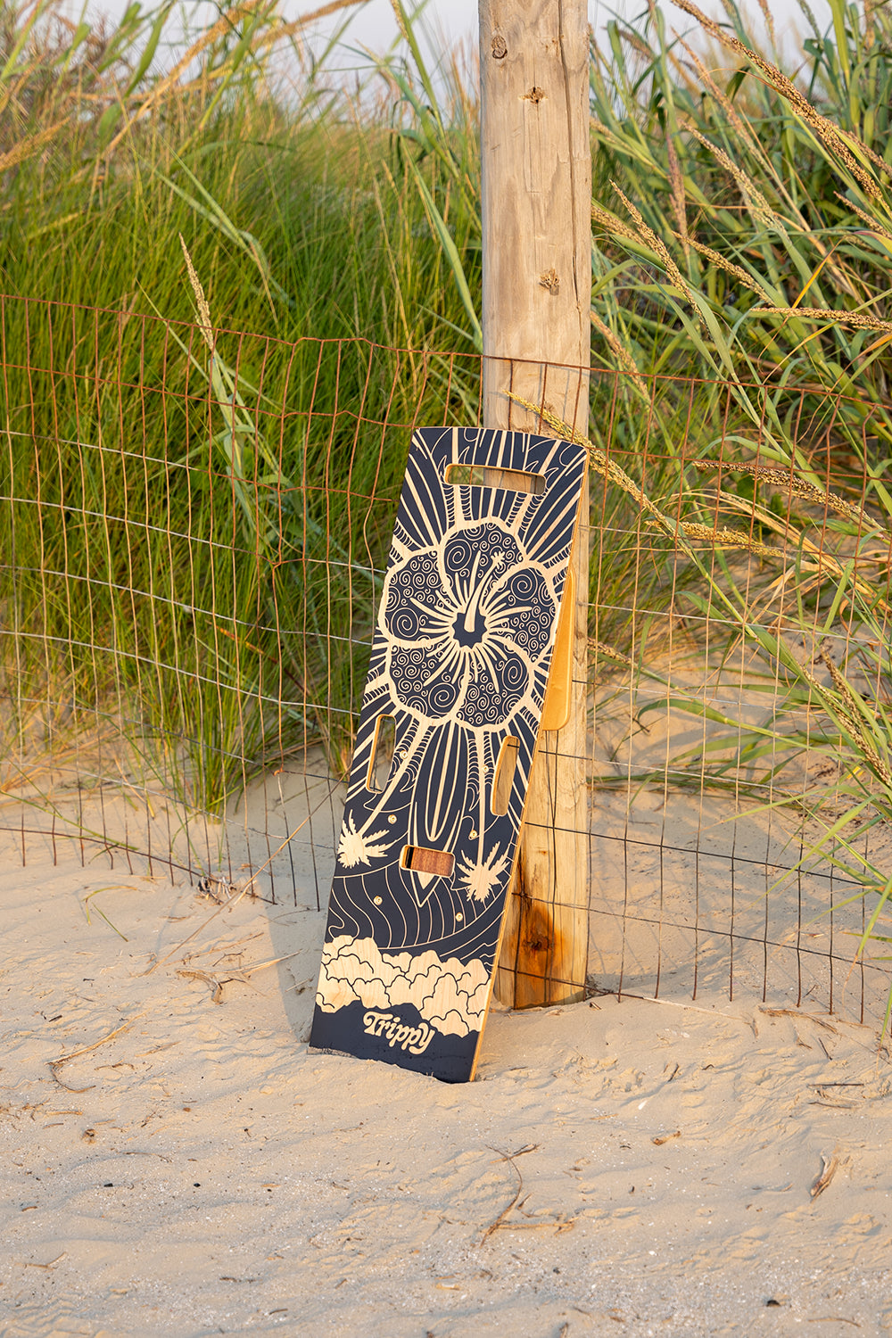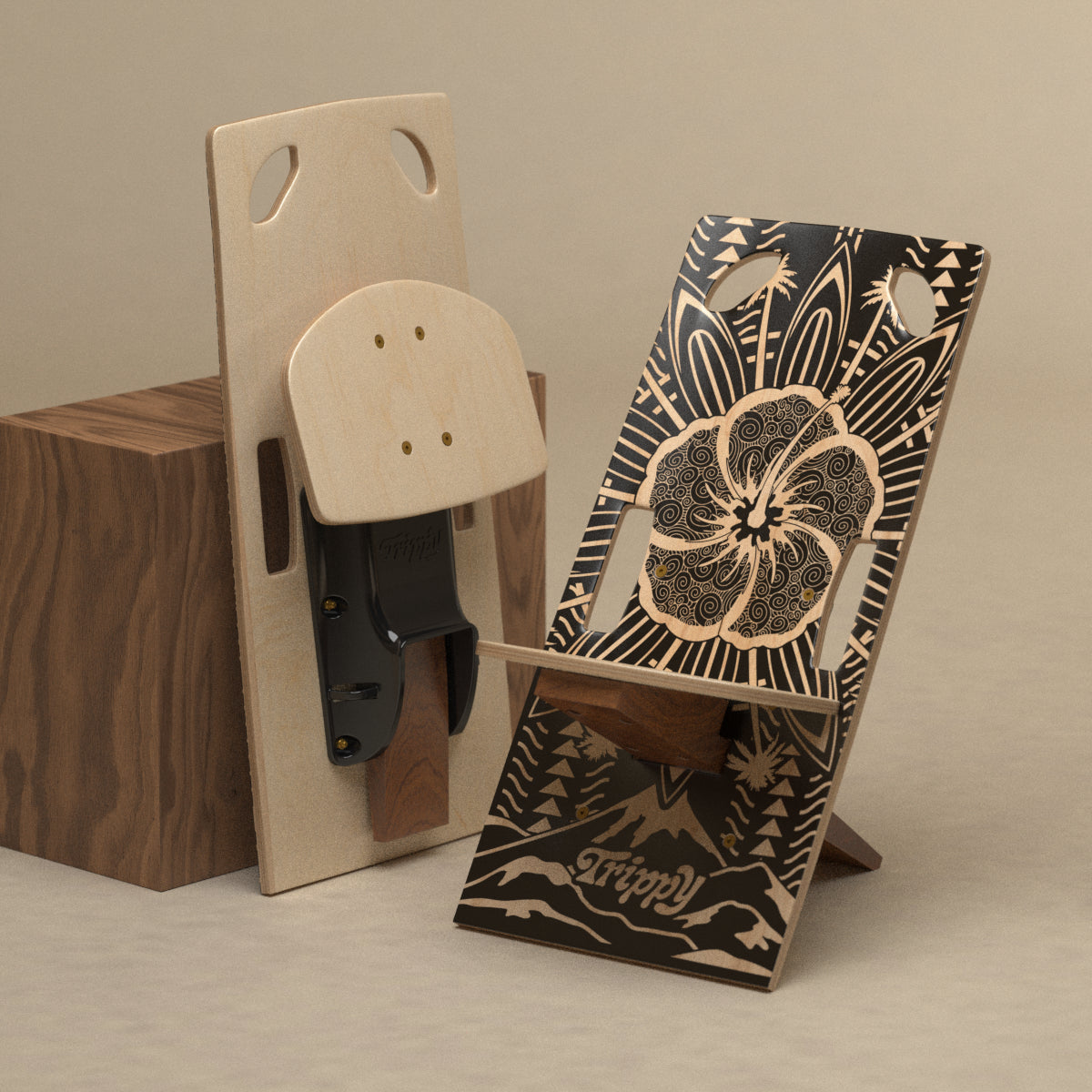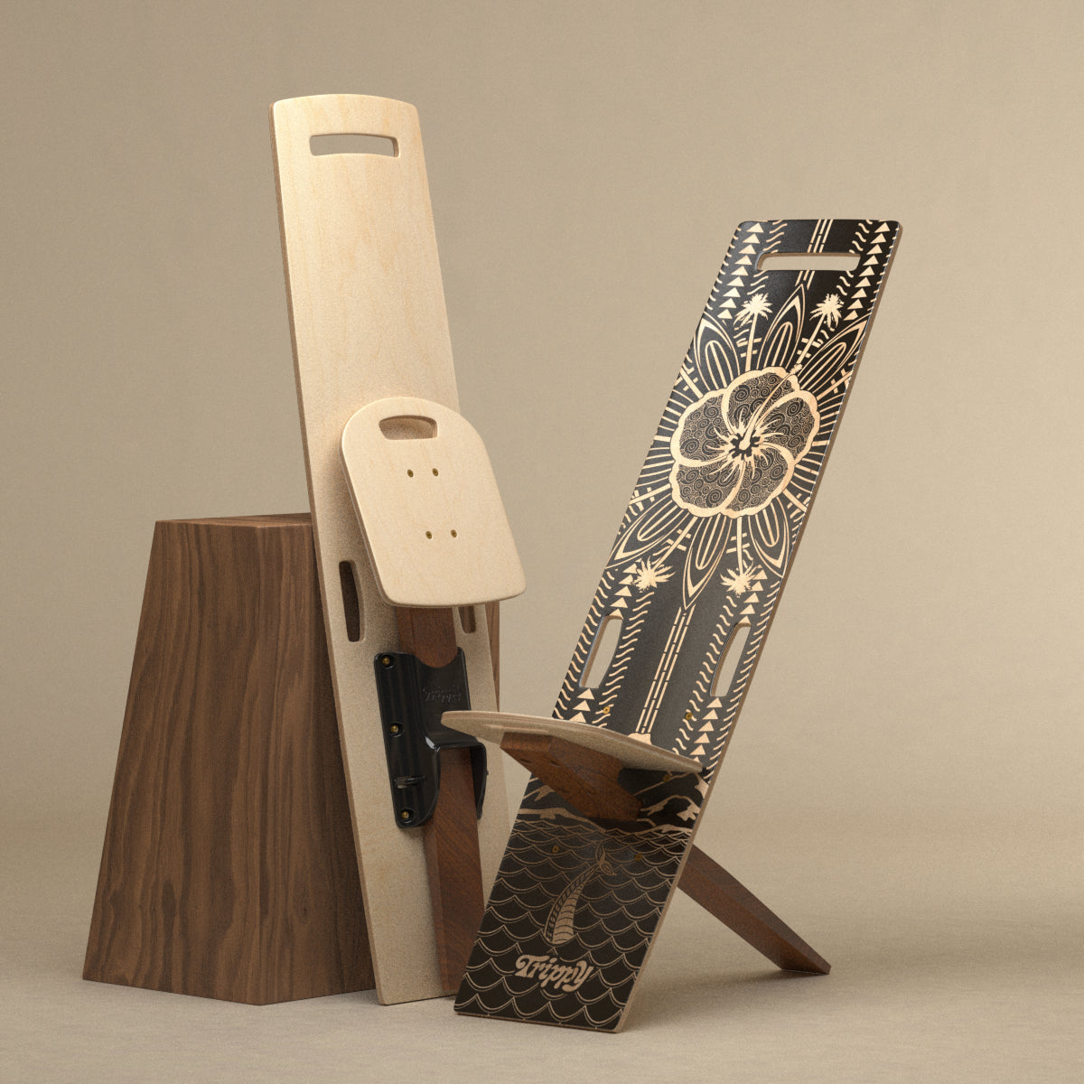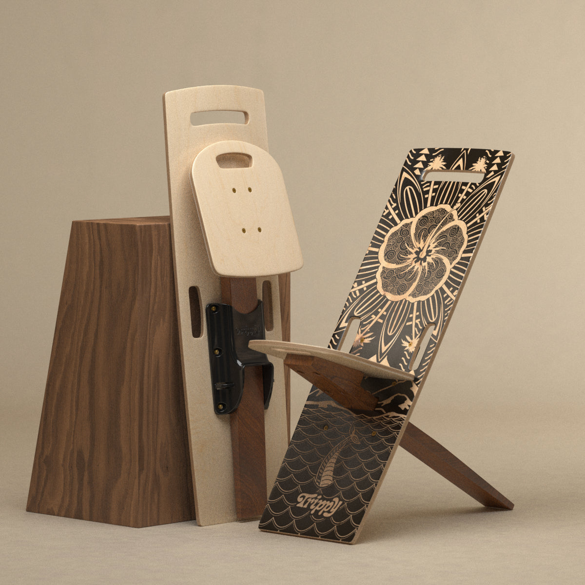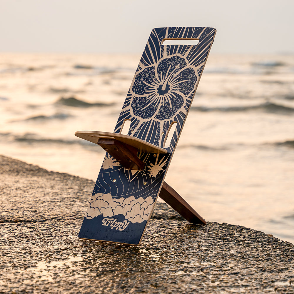 Each Trippy Chair is crafted with premium maple and sapele wood, water-resistant coatings, and UV-resistant inks (for printed chairs). They’re perfect for a classy, relaxing sit, whether indoors or outdoors.